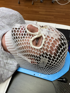 If you are receiving radiation therapy for head and neck cancer, brain cancer, or brain metastases, then you will likely need to get a thermoplastic mask made for your treatment. The mask is worn every day for treatment, and it is made of a plastic material that looks like mesh.