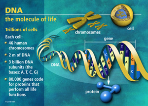 There are a number of potential factors causing human genetic abnormalities. We now know that some acquired mutations can turn on oncogenes or can inhibit tumor suppressor genes. These mutations occur in the cell's chromosomes (the 46 "units" or "packages" within a cell which contain its genetic material) during normal cellular division. There are names for some of these types of chromosomal mutations, which you may see in your further reading, such as "chromosomal translocations", "inversions", "deletions", "amplifications" or "point mutations." (The specifics of these different chromosomal abnormalities are beyond the scope of this article, but suffice it to say that these abnormalities lead to various kinds of genetic disarray.)