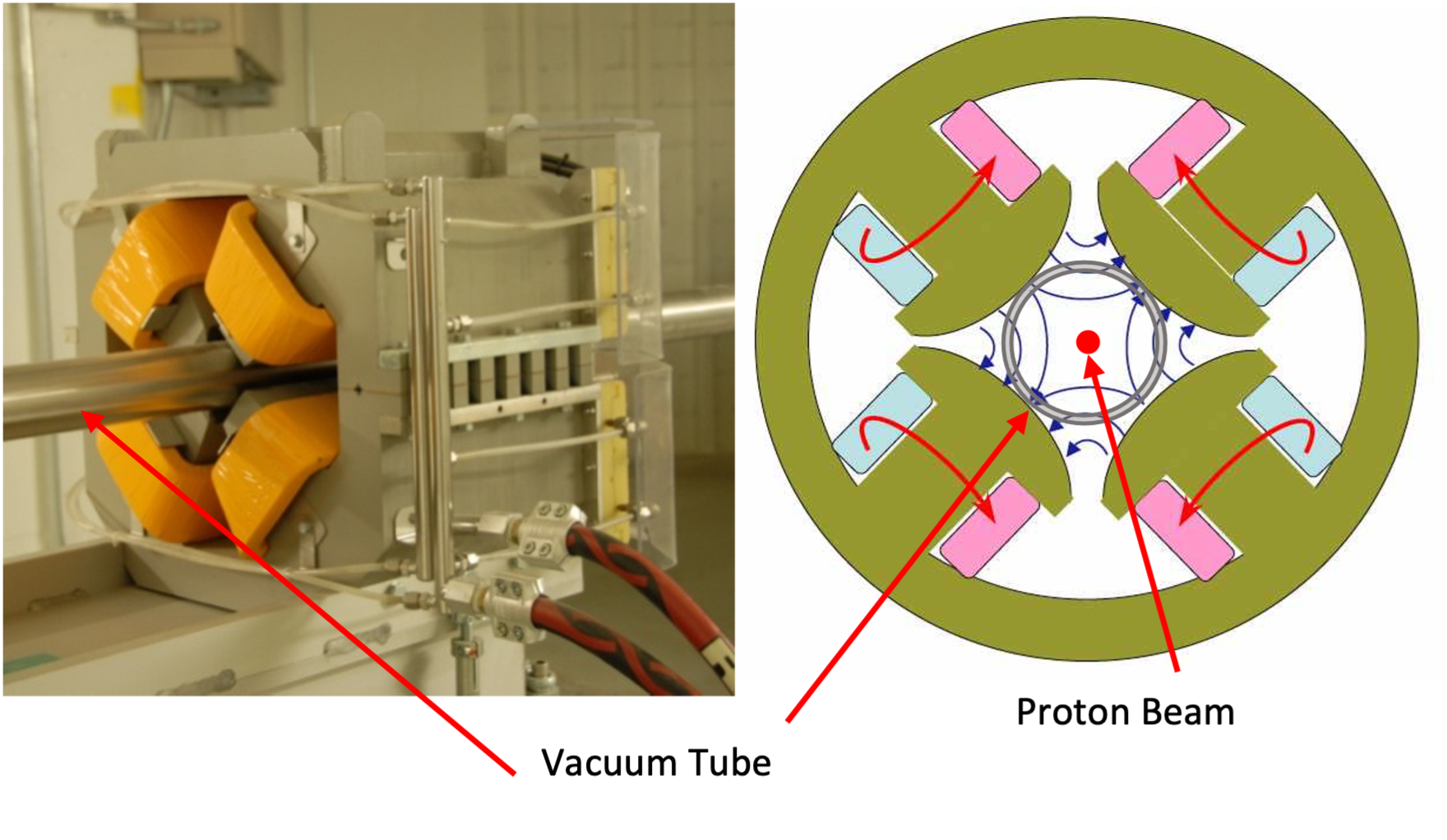 More electromagnets are used to steer the beam into the treatment room. These are dipole magnets that bend the beam (Figure 8).